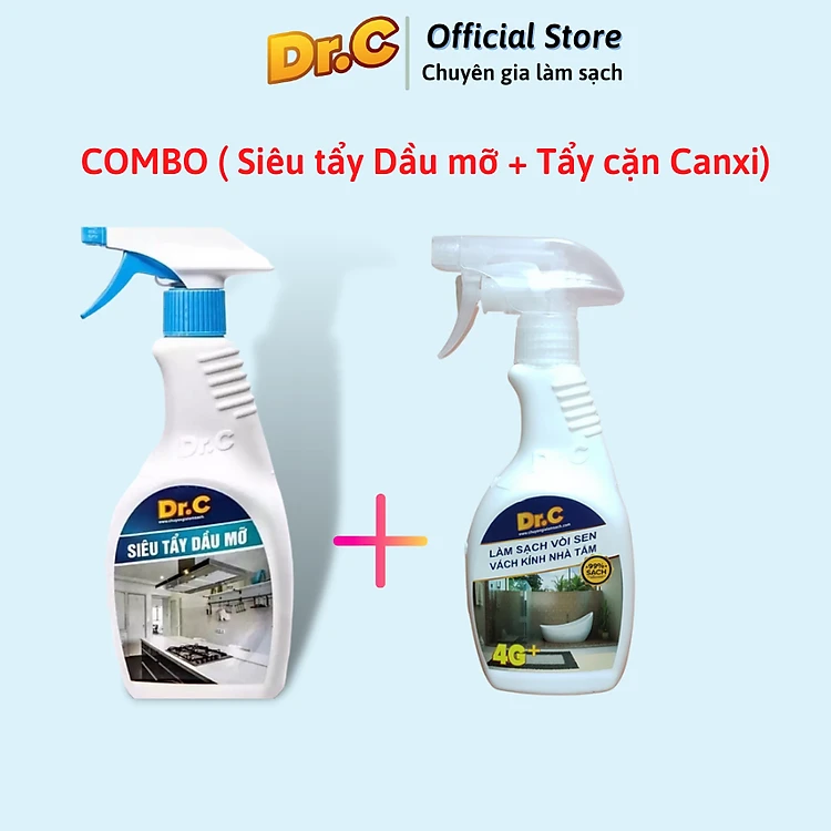 Combo Dr.C CHÍNH HÃNG siêu tiết kiệm ( Siêu tẩy dầu mỡ Dr. C + Tẩy cặn Canxi, vòi sen, vách kính)