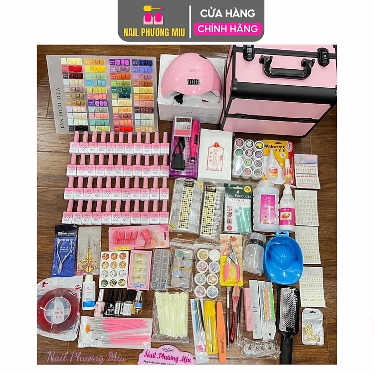 Combo Dụng Cụ Làm Móng Đầy Đủ Số 4, Bộ Phụ Kiện Làm Nail Chuyên Nghiệp Sơn Very Good Nail 44 Màu, Máy Hơ Sun 5, Cốp Nhôm Nữ