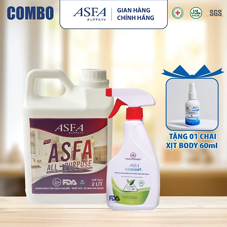 [Combo] Dung dịch làm sạch khuẩn, khử mùi đa năng ASFA All Purpose (Can 2 Lít) & ASFA Home Fresh (500ml)