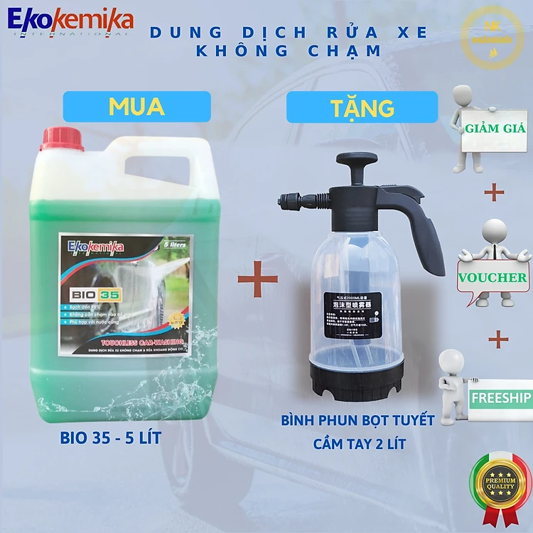 Bio 35 - 5 lít tặng kèm bình phun bọt tuyết 2 lít - Dung dịch rửa xe không chạm - Nước rửa xe bọt tuyết - Ekokemika
