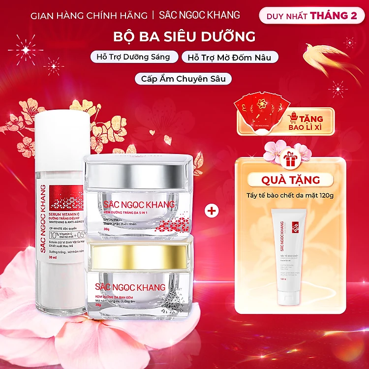 COMBO dưỡng da chuyên sâu kem dưỡng ban đêm 30g + kem dưỡng ban ngày 5 in 1 30g + Serum dưỡng trắng 30ml cho tác dụng nhanh mạnh, toàn diện