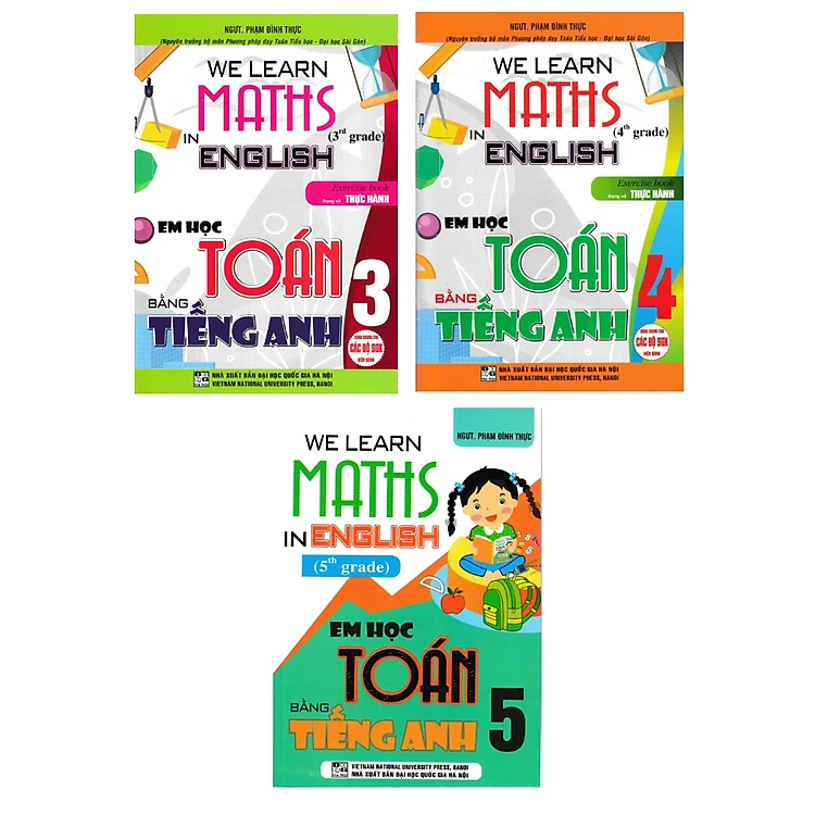 Combo Em Học Toán Bằng Tiếng Anh - We Learn Maths In English - Lớp 3 + 4 + 5 - HA
