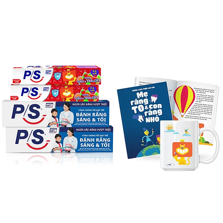 Combo Family 02 Kem Đánh Răng P/S Ngừa Sâu Răng Vượt Trội 240G Và 02 Kem Đánh Răng Trẻ Em Hương Dâu Tặng Kèm Bộ Quà Tặng Vừa Chải Vừa Chơi P/S bao gồm 2 tuýp kem đánh răng ngừa sâu răng vượt trội và 2 tuýp kem đánh răng trẻ em từ 6 đến 12 tuổi hương dâu và trái cây giúp cả gia đình ngừa sâu răng hiệu quả.