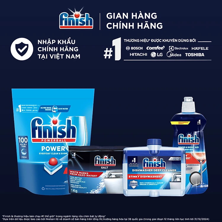 Combo Finish toàn diện 1: Everyday Shine & Clean + Nước Làm Bóng Finish 500ml + Muối Rửa Chén Finish Salt túi 1kg + Dung dịch vệ sinh máy