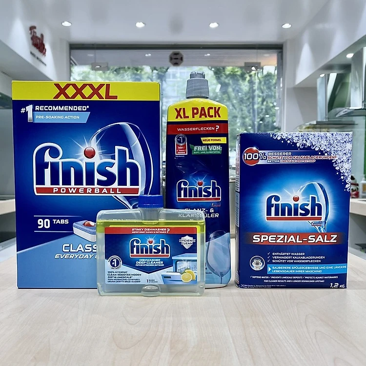 COMBO FINISH: Viên rửa bát Classic 90 viên + Bóng 750ml + Muối 1,2kg + Dung dịch vệ sinh