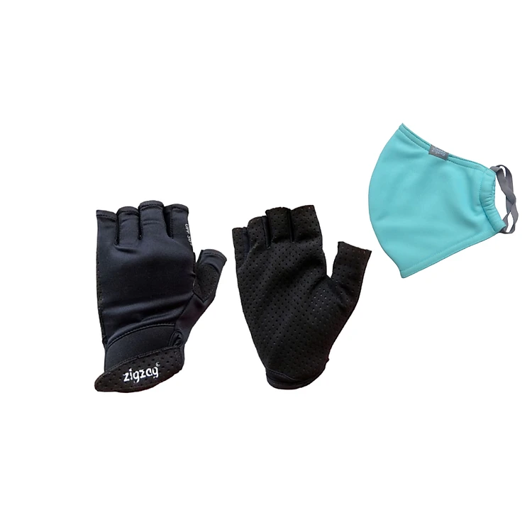 Combo găng tay thể thao Đen + khẩu trang 3 lớp chống nắng UPF50+ Zigzag