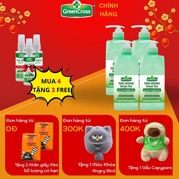 Combo 4 Chai GEL rửa tay sát khuẩn tay bảo vệ toàn diện Green Cross Total Defense 500ml