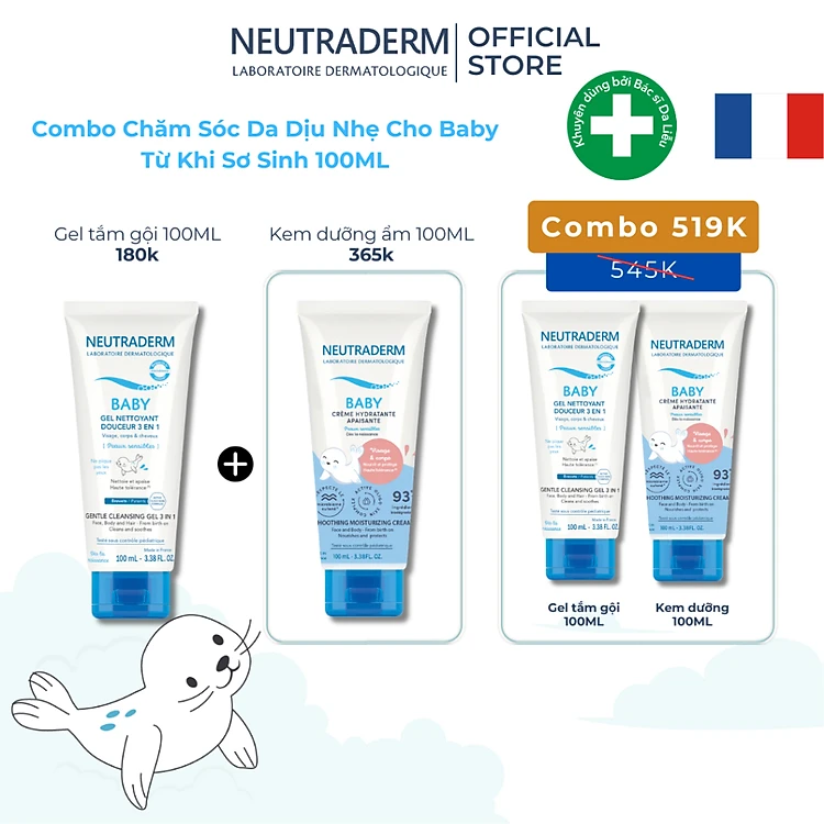Combo Gel tắm dịu nhẹ và kem dưỡng ẩm cho Baby Neutraderm