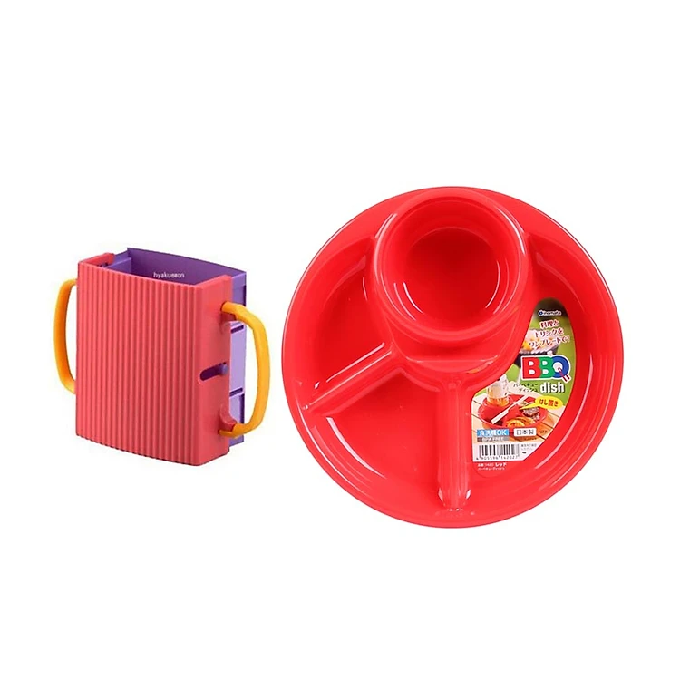 Combo Giá đựng hộp sữa có quai màu hồng + Khay ăn chia 3 ngăn có kèm khay để cốc, thìa dĩa (Màu đỏ) - Nội Địa Nhật Bản