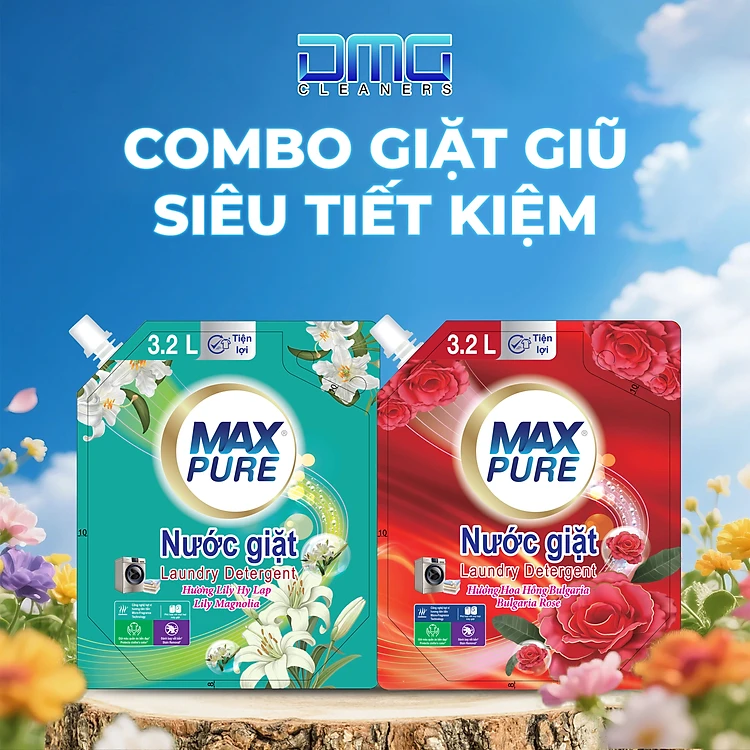 Combo Giặt Giũ Siêu Tiết Kiệm 2 Túi Nước Giặt Maxpure: 1 Túi Hương Lily Hy Lạp + 1 Túi Hương Hoa Hồng (Mỗi Túi 3.2L)
