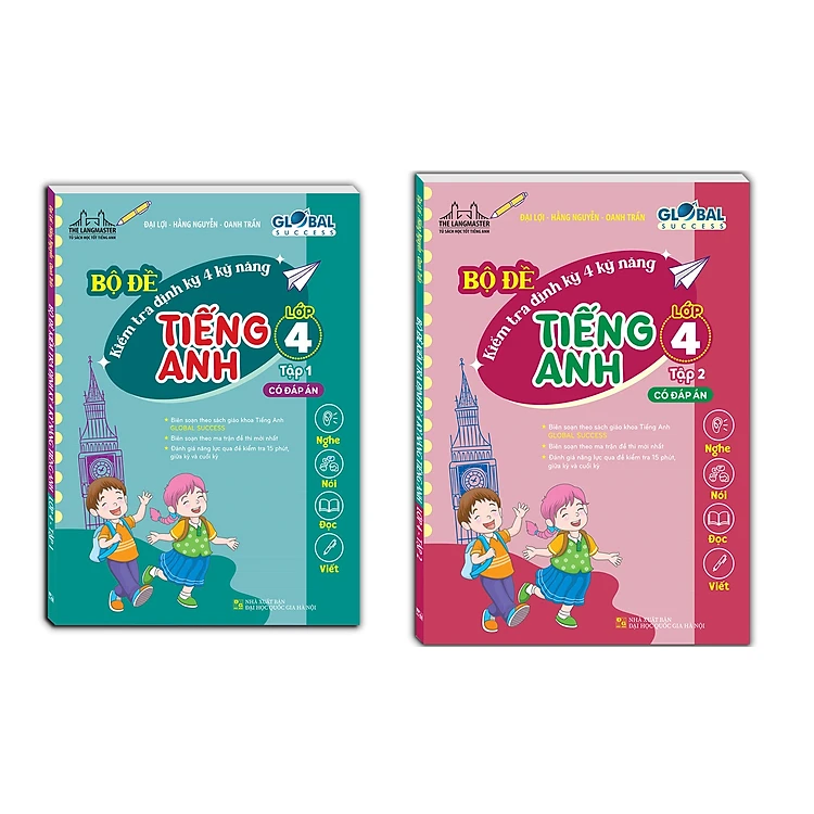 Combo GLOBAL SUCEESS - Bộ đề kiểm tra định kỳ 4 kỹ năng tiếng anh lớp 4 tập 1+2 (có đáp án)