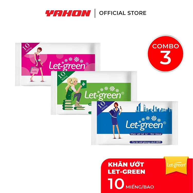Combo Gói Khăn Giấy Ướt Bỏ Túi LET-GREEN, 10 Miếng/Gói