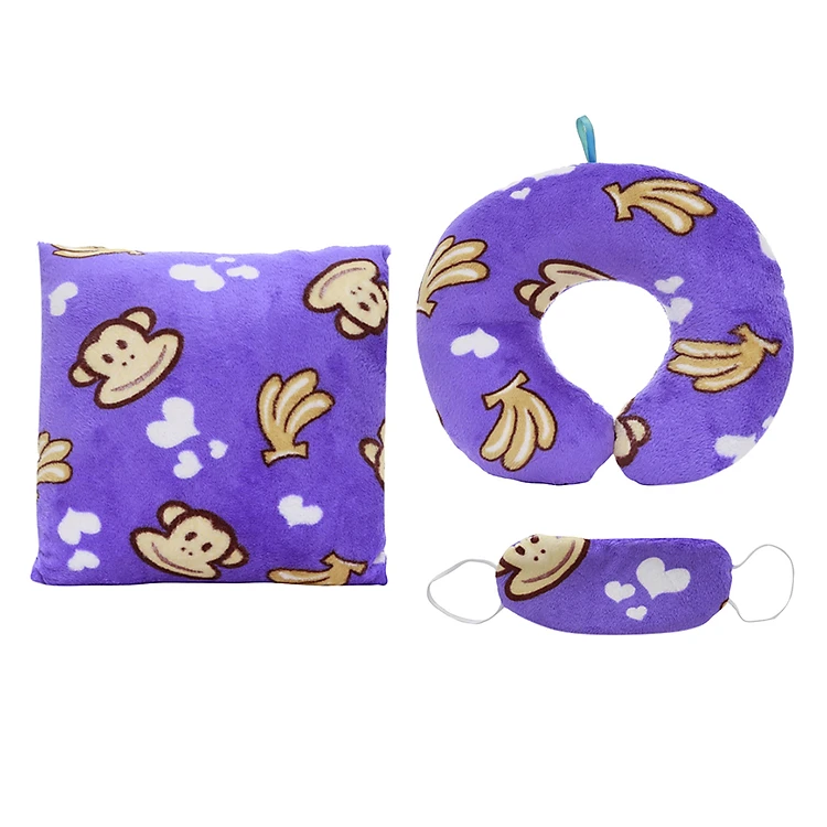 Combo Gối Tựa Lưng, Gối Chữ U Và Bịt Mắt Họa Tiết 39 ThiVi - Tím