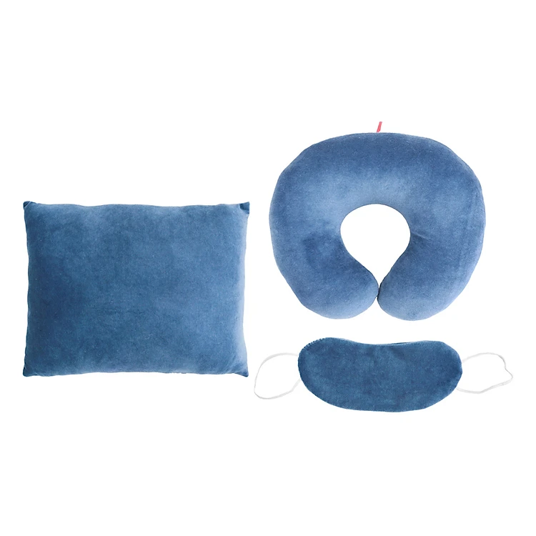 Combo Gối Tựa Lưng, Gối Kê Cổ Chữ U Và Bịt Mắt Thivi Màu Trơn 10 - Xanh Coban