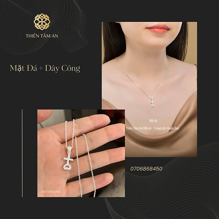 Combo gồm Mặt dấu Thiên Tâm + Dây chuyền bạc S925 (mặt đá + dây công) TTA Jewelry