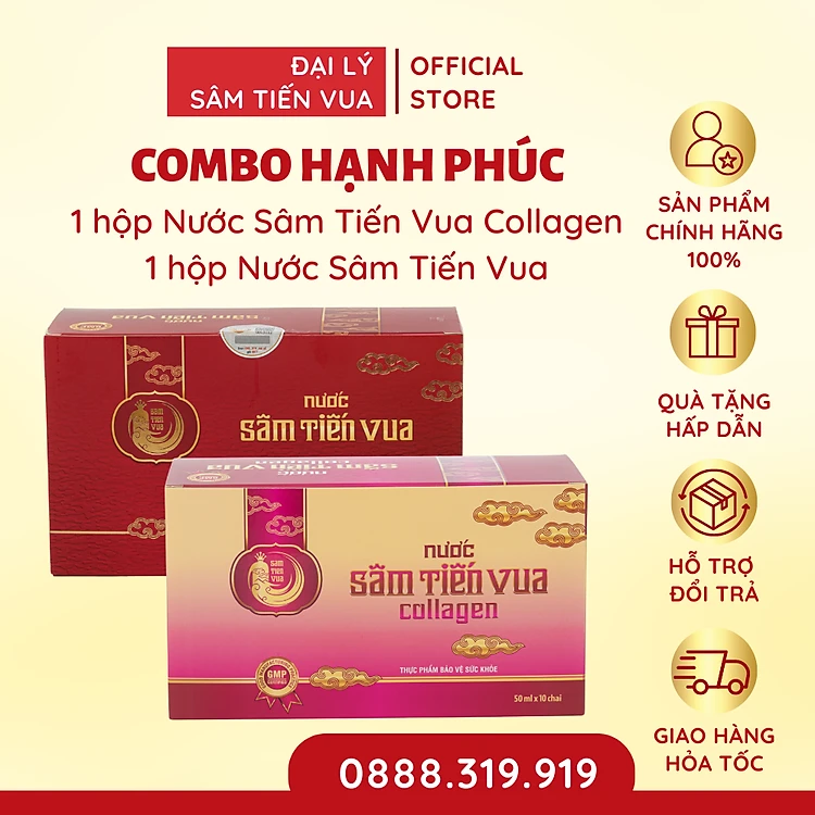 Combo Hạnh Phúc (Gồm 1 Hộp Nước Sâm Tiến Vua Collagen Và 1 Hộp Nước Sâm Tiến Vua) Thức Uống Cao Cấp Tốt Cho Sức Khỏe