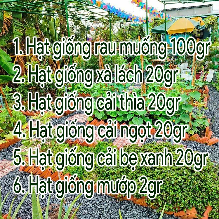 Combo Hạt Giống Rau 6 Loại: Hạt Giống Rau Muống 100gr, Hạt Giống Cải Ngọt 20gr, Hạt Giống Cải Xanh 20gr, Hạt Giống Xà Lách 20gr, Hạt Giống Cải Thìa 20gr, Hạt Giống Mướp 2gr