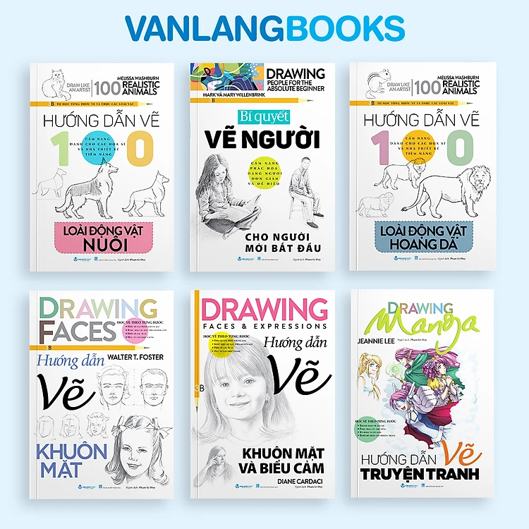 Combo Họa Giấc Mơ Bí Quyết Vẽ Người Cho Người Mới Bắt Đầu + Hướng Dẫn Vẽ 100 Loài Động Vật Hoang Dã + Động Vật Nuôi + Hướng Dẫn Vẽ Khuôn Mặt Và Biểu Cảm + Khuôn Mặt + Truyện Tranh - Vanlangbooks