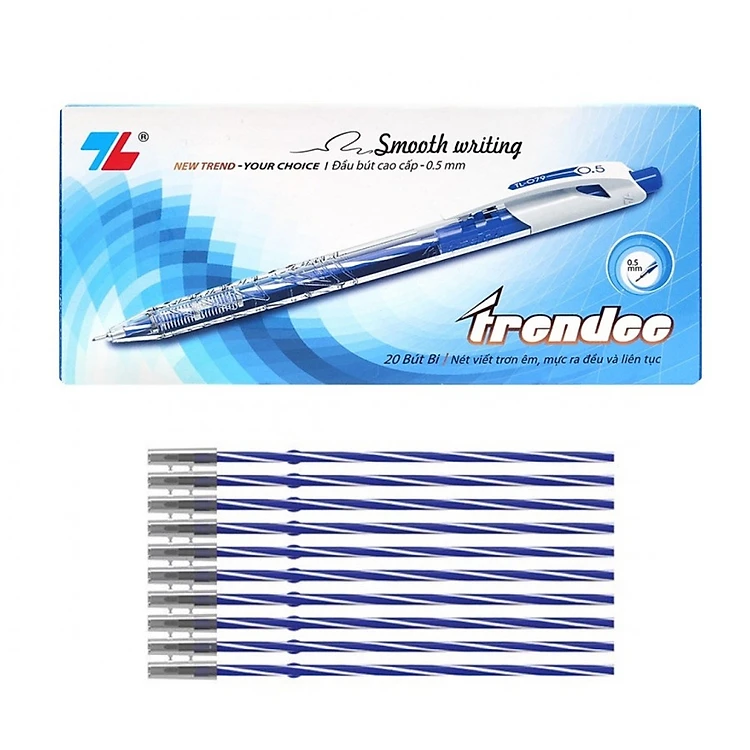 - Ở tất cả sản phẩm bút bi TL-079, tên bút "Trendee" được dập nổi trên thân