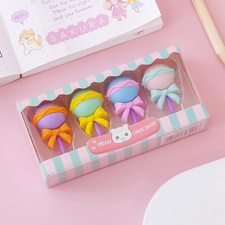 Combo hộp 4 cục gôm tẩy bút chì hình bánh kẹo, que kem nhiều màu dùng cho học sinh, sinh viên PK1316
