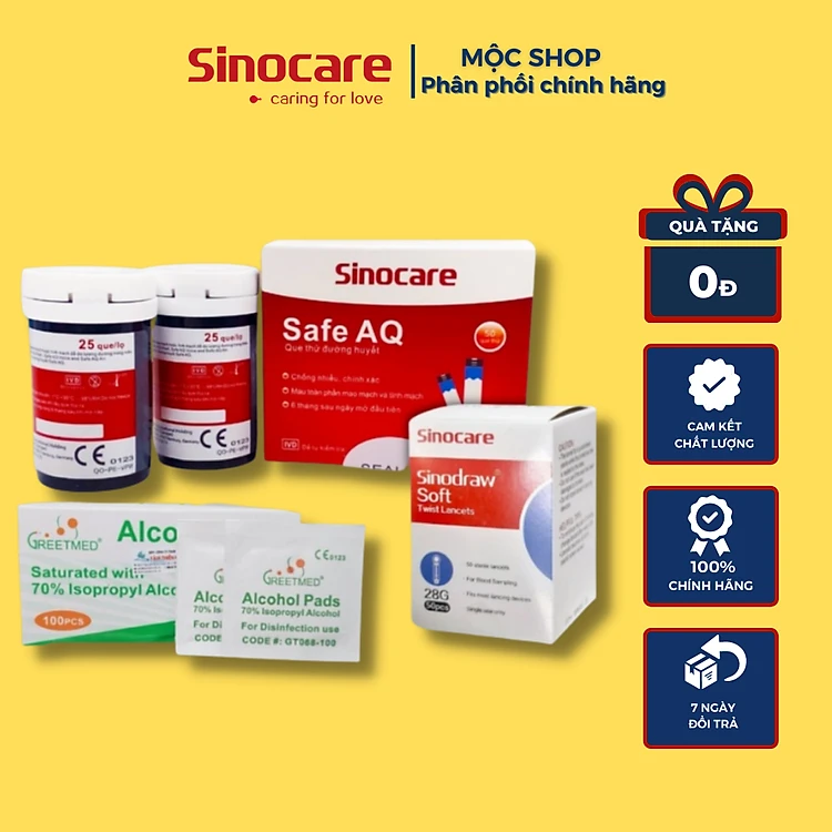 Combo hộp 50 que thử đường huyết và 50 kim lấy máu cho máy đo đường huyết Sinocare Safe AQ