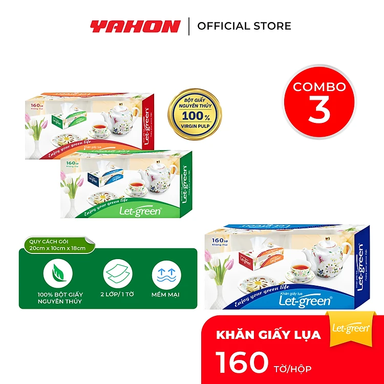 Khăn Giấy Lụa LET-GREEN | Bột Giấy Nguyên Thủy | 160 Tờ/Hộp, 2 Lớp/Tờ