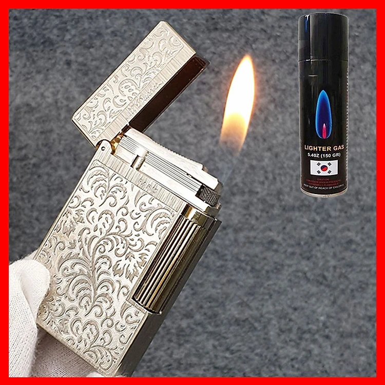 Combo Hộp Quẹt Bật Lửa Gas Đá D10 Trắng Khắc Hoa Văn Tiếng Kêu Cực Vang + Tặng Bình Gas Chuyên Dụng Cho Bật Lửa