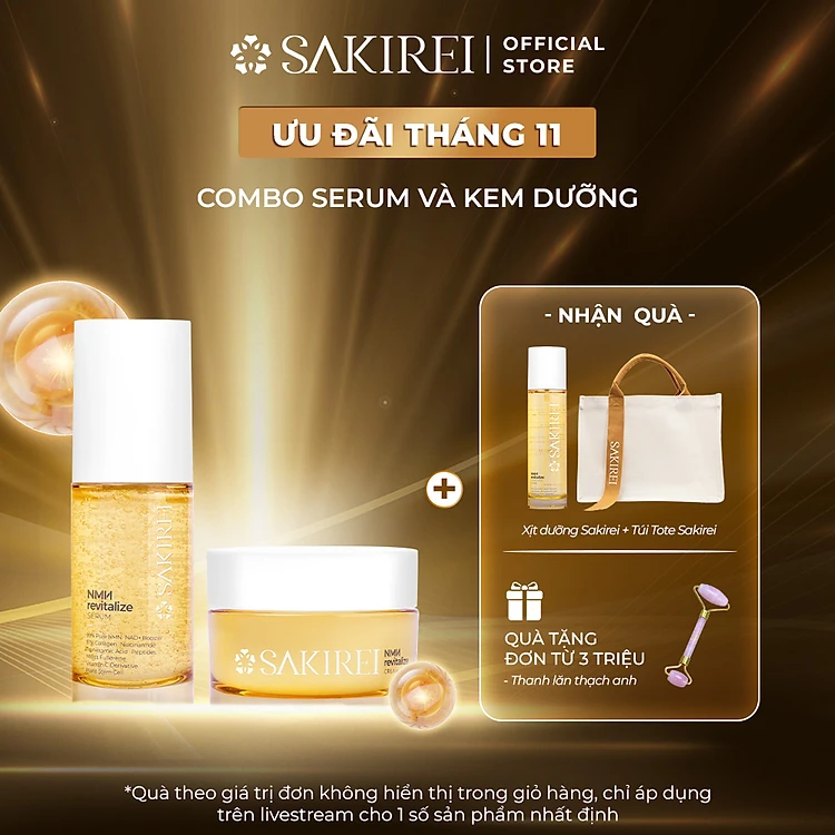 Combo Serum NMN và Kem dưỡng phục hồi da Sakirei NMN Revitalize từ Nhật Bản