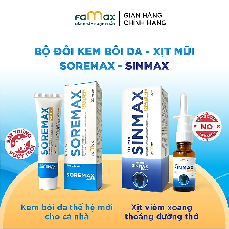 [FAMAX] Combo kem dưỡng da Soremax Nature và xịt mũi Sinmax Nature - giúp dưỡng da, hỗ trợ viêm xoang, viêm mũi dị ứng