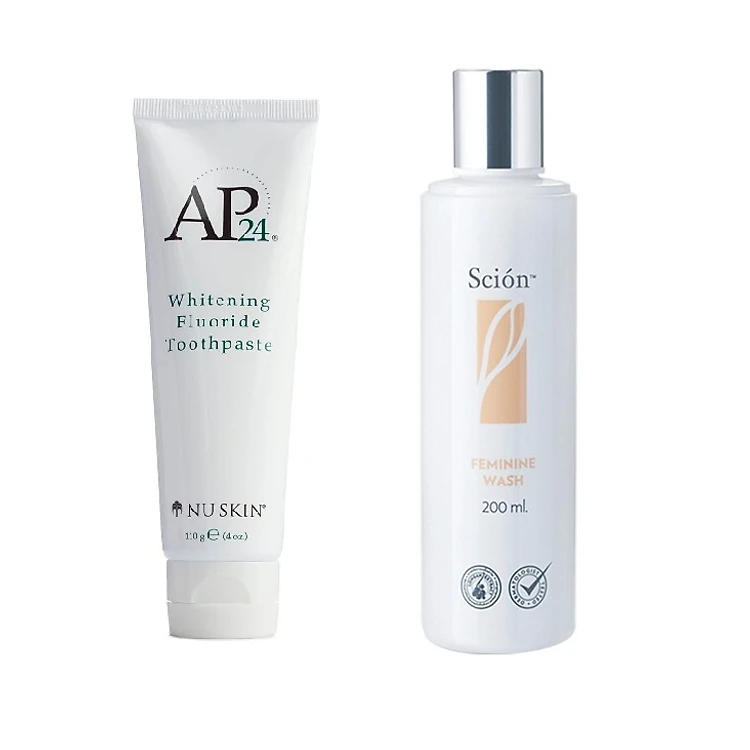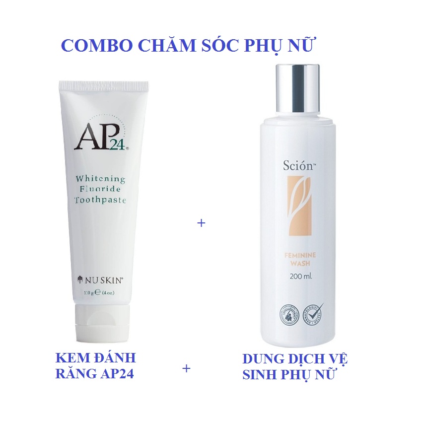Combo Kem Đánh Răng Ap24 Nuskin 110g + Dung Dịch Vệ Sinh Phụ Nữ Nuskin Scion Feminine Wash Chính Hãng 200ml. Một combo dành riêng cho chị em phụ nữ chăm sóc cơ thể.