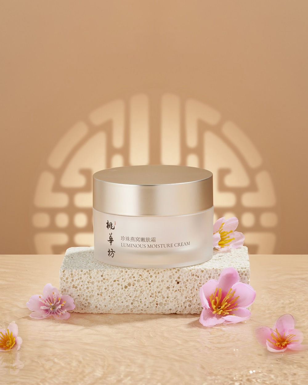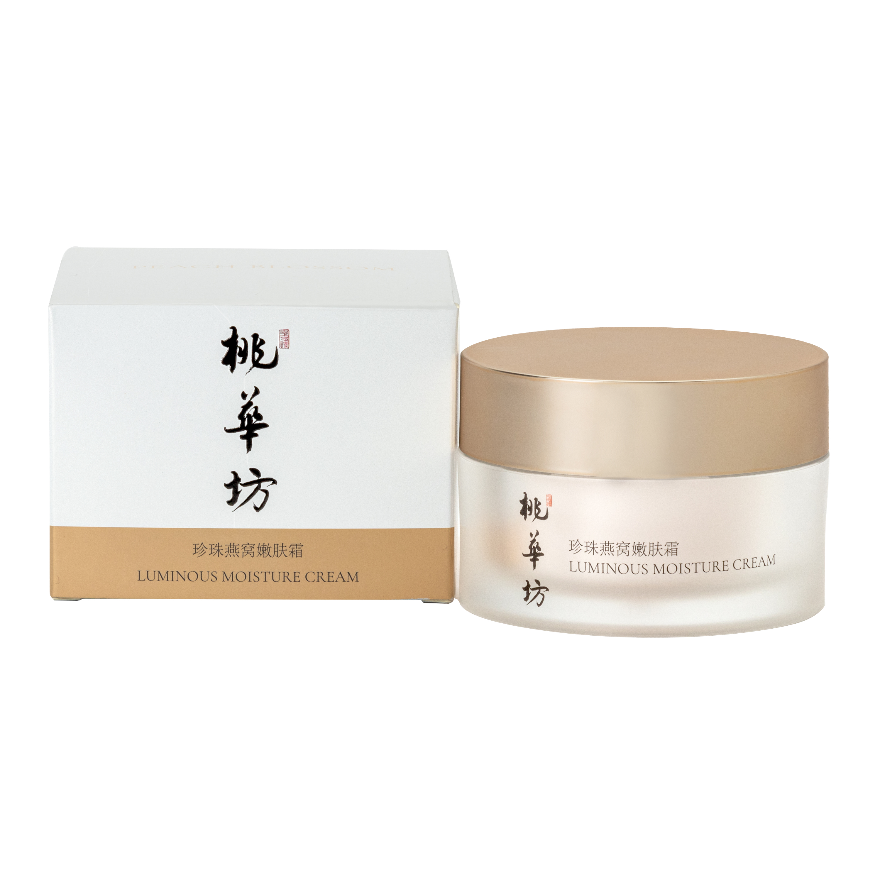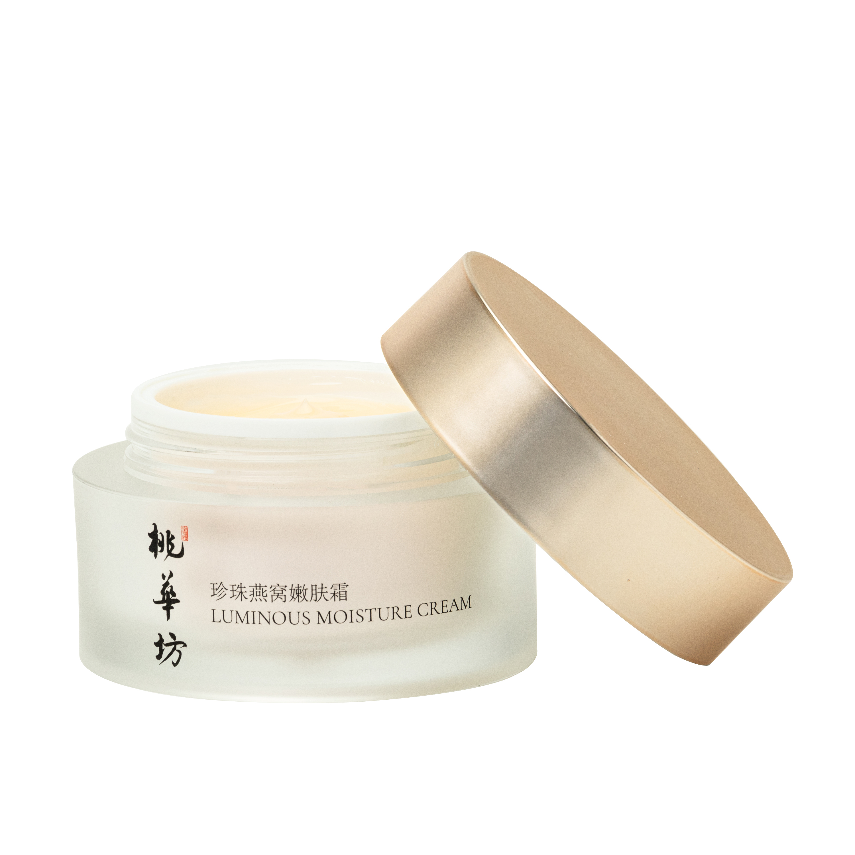 Peach Blossom Luminous Moisture Cream chứa các thành phần dưỡng da truyền thống và các thành phần đặc biệt như bột ngọc trai, ngọc trai thủy phân, chiết xuất tổ yến, và chiết xuất lô hội giúp làn da được dưỡng ẩm và giữ ẩm đến mức tối đa. Với sodium hyaluronate và chiết xuất rong biển, kem dưỡng tiếp tục khóa nước, làm mềm lớp sừng, thúc đẩy sản xuất collagen, phục hồi độ đàn hồi của da và làm cho da mềm mại và mịn màng. Bổ sung rutin và các thành phần chống ánh sáng xanh khác để ngăn chặn ánh sáng xanh có hại cho da trên bề mặt da.