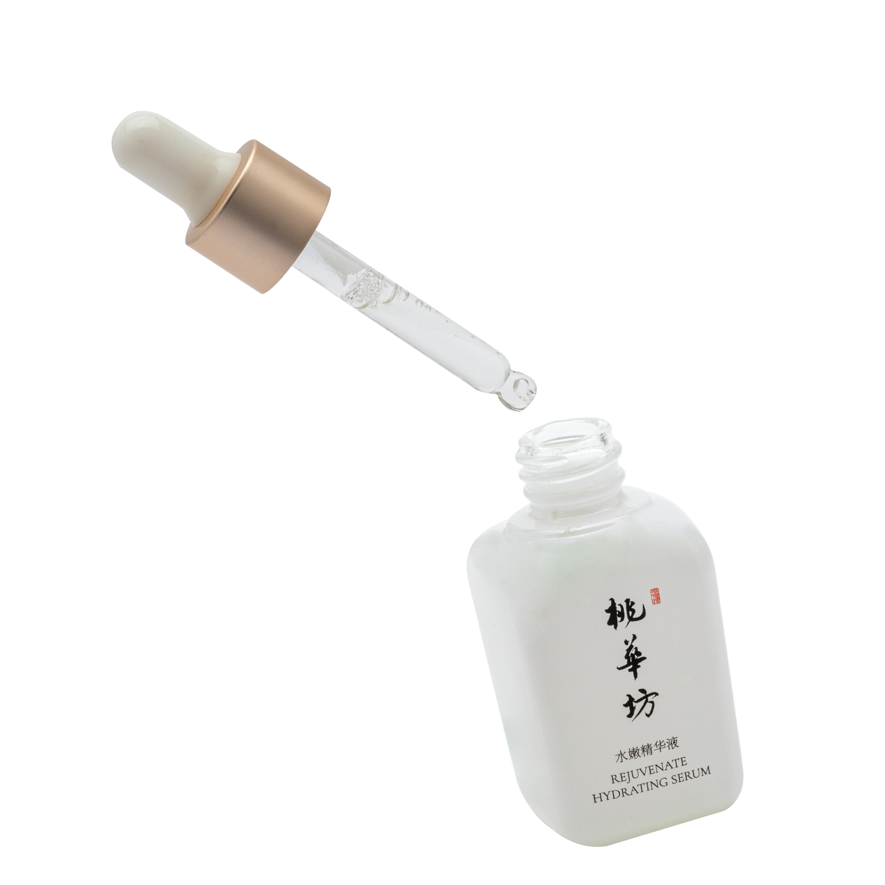 Peach Blossom Rejuvenate Hydrating Serum chứa bốn loại axit hyaluronic đậm đặc, tạo thành mạng lưới khóa nước trên bề mặt da, thấm sâu vào 4 lớp dưới da và dưỡng ẩm sâu. Bổ sung nicotinamide, fullerene, albumin huyết thanh, oligopeptides và nhiều thành phần thực vật để đẩy nhanh hơn nữa quá trình trao đổi chất, thúc đẩy tổng hợp collagen, chống oxy hóa, chống nhăn, làm trắng, làm chậm lão hóa da và làm cho da ngậm nước. Mềm mại, săn chắc và đàn hồi.