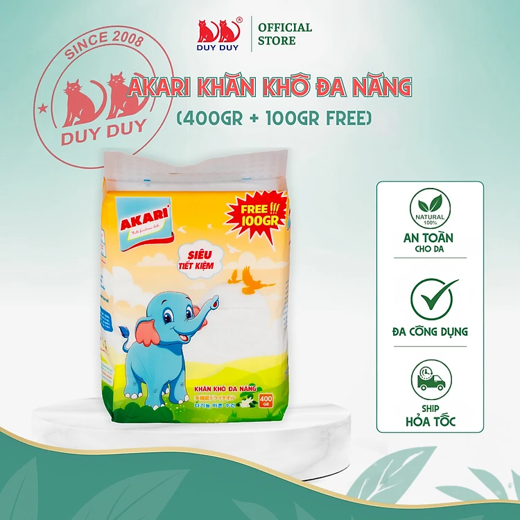 Combo 5 gói Khăn khô đa năng Akari vải sợi tự nhiên 500gr (13.5x20cm) dạng rút siêu tiết kiệm