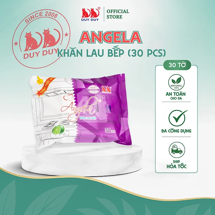 Combo 10 gói Khăn lau bếp Angela vải bi 30 tờ (24x31cm) hương chanh diệt khuẩn và khử mùi tối đa