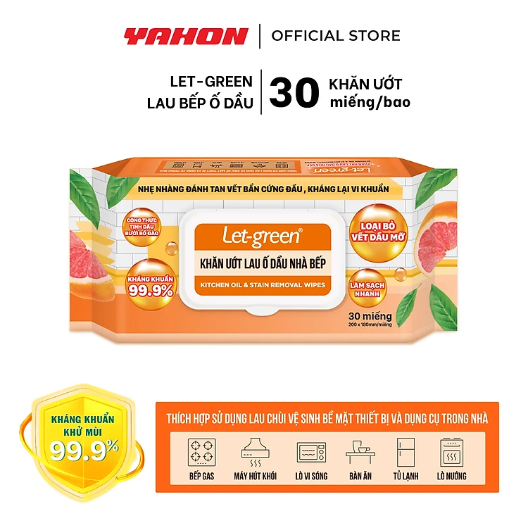 Khăn Ướt Lau Bếp LET-GREEN | Sạch Nhanh Ố Dầu, Kháng Khuẩn Hiệu Quả | 30 Tờ/Bao