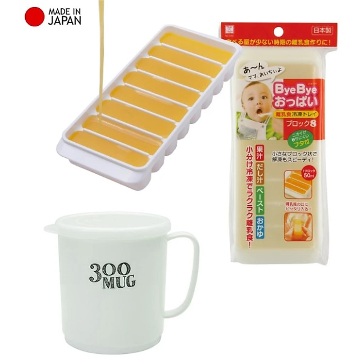 Combo khay trữ đồ ăn dặm cho bé Kokubo 8 ngăn + cốc nhựa nắp mềm dành cho bé - nội địa Nhật Bản