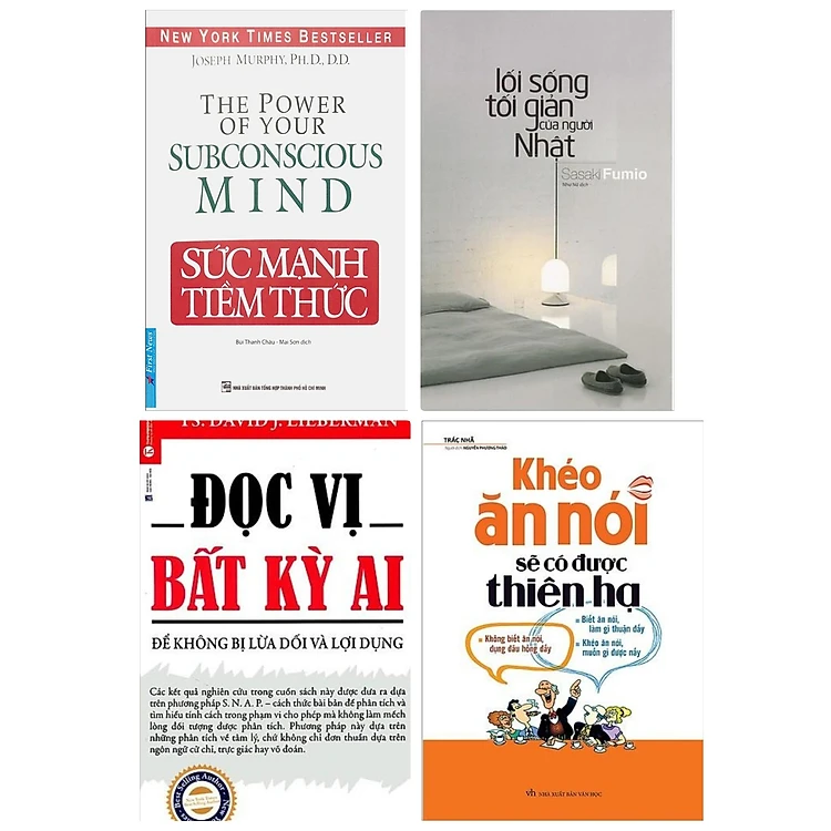 Combo Kỹ Năng Sống Bán Chạy Nhất Mọi Thời Đại: Sức Mạnh Tiềm Thức + Đọc Vị Bất Kỳ Ai - Để Không Bị Dối Lừa Và Lợi Dụng + Khéo Ăn Nói Sẽ Có Được Thiên Hạ + Lối Sống Tối Giản Của Người Nhật (Bộ 4 Cẩm Nang Bứt Phá Bản Thân Và Thu Hút Người Đối Diện / Tặng Kè