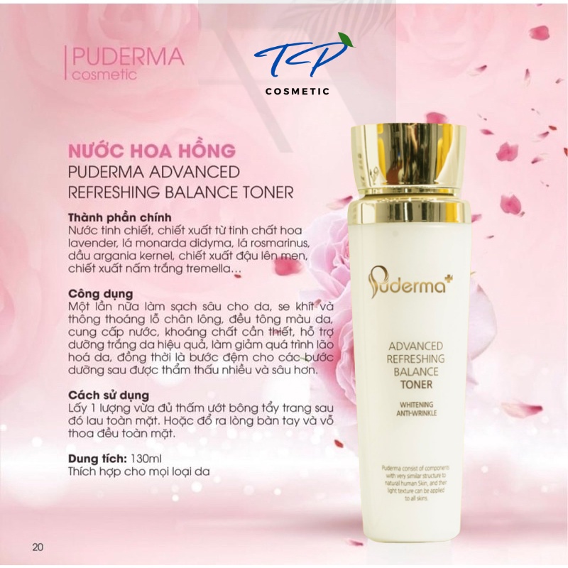 - Nước hoa hồng Puderma giúp làm sạch lớp trang điểm, bụi bẩn, dầu thừa trên da, giúp làm se khít lỗ chân lông, đồng thời cung cấp độ ẩm và dưỡng chất cho da, mang lại làn da trắng, mịn màng.