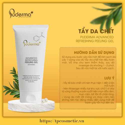 - Tẩy da chết Puderma Advanced Refreshing giúp làm sạch tế bào da chết trên da, mang lại làn da mịn màng, tươi sáng.