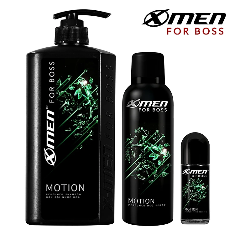 Combo Lăn Khử Mùi X-Men For Boss Motion (50ml) + Xịt Khử Mùi X-Men For Boss Motion (150ml) + Dầu Gội Nước Hoa X-Men For Boss Motion (650g)