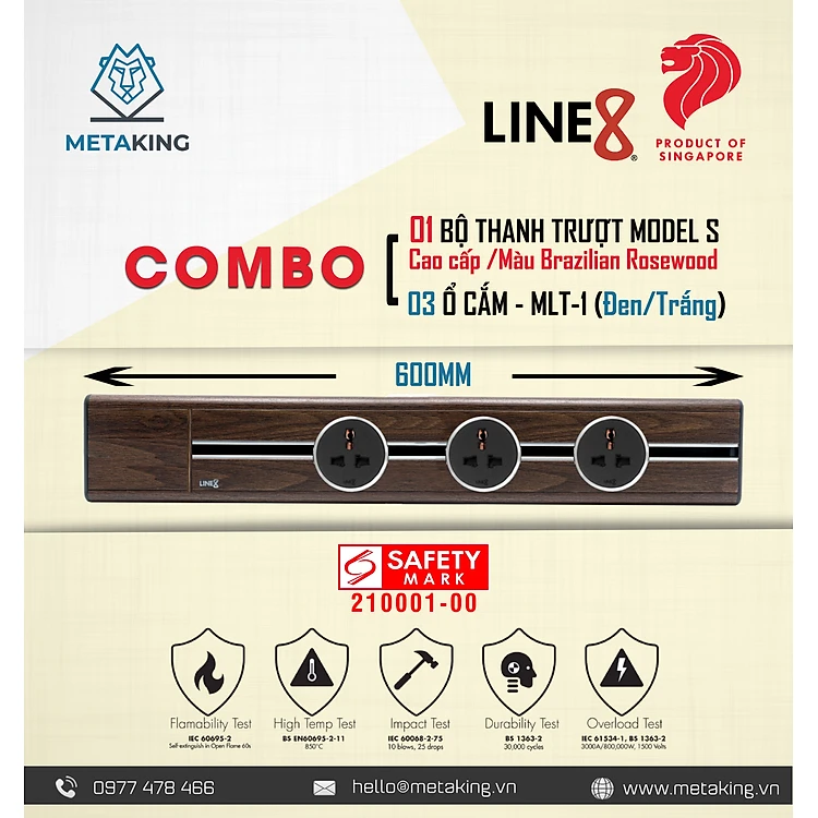 COMBO [ 1 Thanh Ray Dẫn Điện Line8 Model S (600mm/Cao Cấp/Màu Brazilian Rosewood) & 3 Ổ Cắm MLT-1 (Đen/Trắng)]