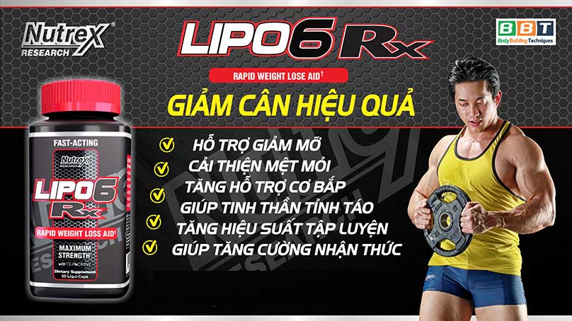 Combo LIPO 6 RX của Nutrex hỗ trợ giảm cân đốt mỡ siêu mạnh hộp 60 viên & Áo GYM đen size L (70kg - 80kg)