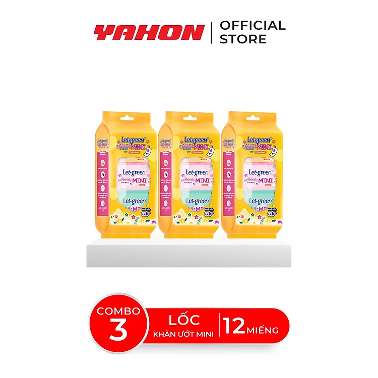 Combo Lốc Khăn Ướt Mini LET-GREEN 12 Miếng/Gói, 6 Gói/Lốc