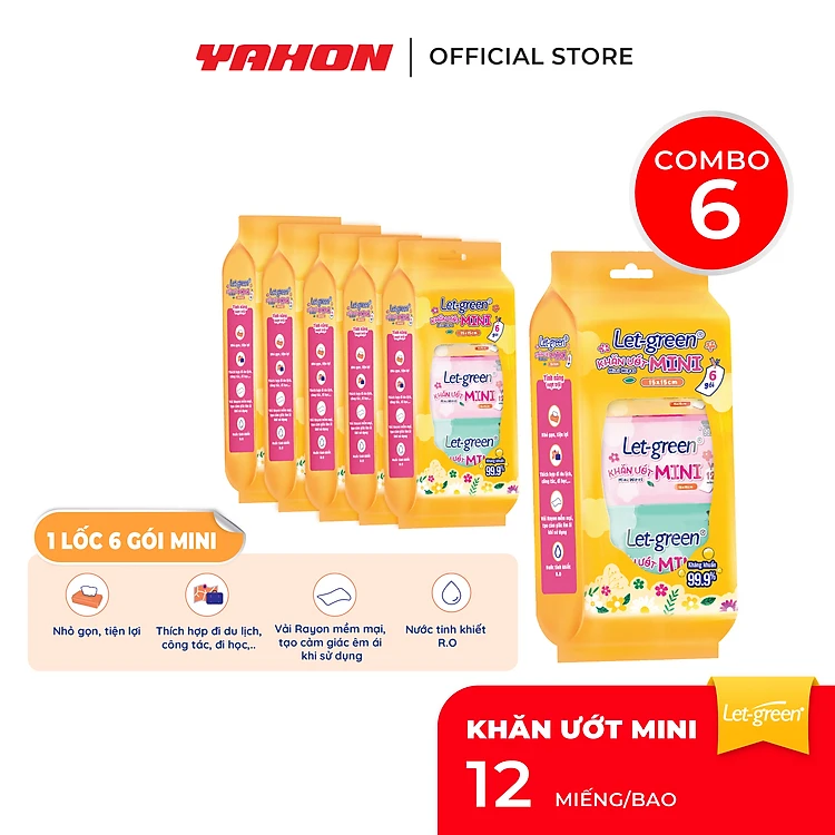 Combo Lốc Khăn Ướt Mini LET-GREEN 12 Miếng/Gói, 6 Gói/Lốc