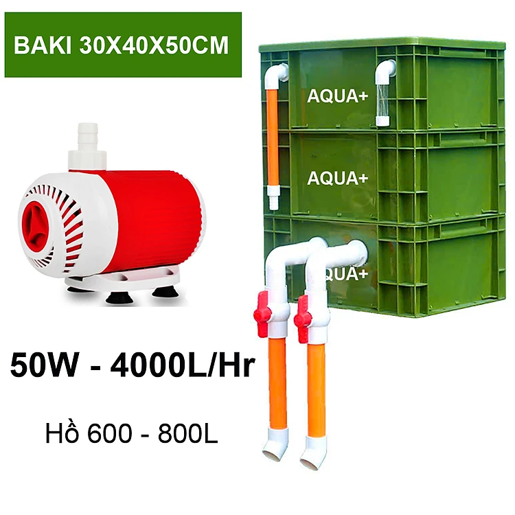 Combo Lọc Thùng Baki Bể Cá 40x30x50cm & Bơm Baoyu BY-105 4000L/H Cho Bể 600-800L (Xanh BĐ)