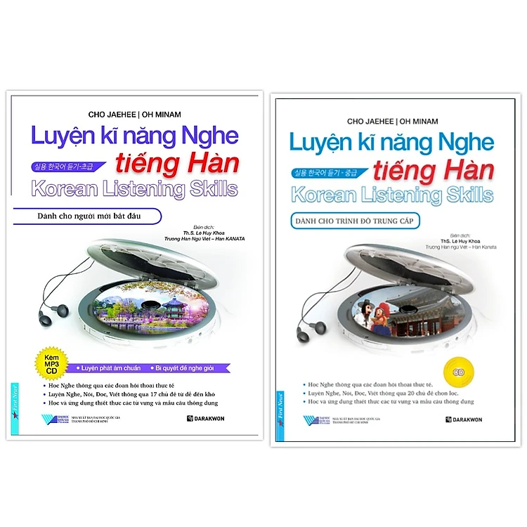 Combo Luyện Kĩ Năng Nghe Tiếng Hàn Dành Cho Người Mới Bắt Đầu + Dành Cho Trình Độ Trung Cấp (Kèm CD)