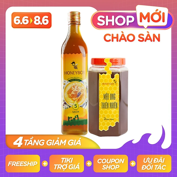 Combo Mật Ong Thiên Nhiên 5 Sạch Honeyboy 500ml và Mật ong thiên nhiên Honeyboy 1kg