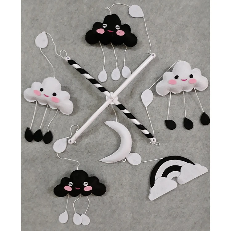 Đồ chơi treo nôi cũi kích thích thị giác hình mây đen trắng được làm handmade khâu tỉ mẩn bằng tay, chất liệu vải nỉ.