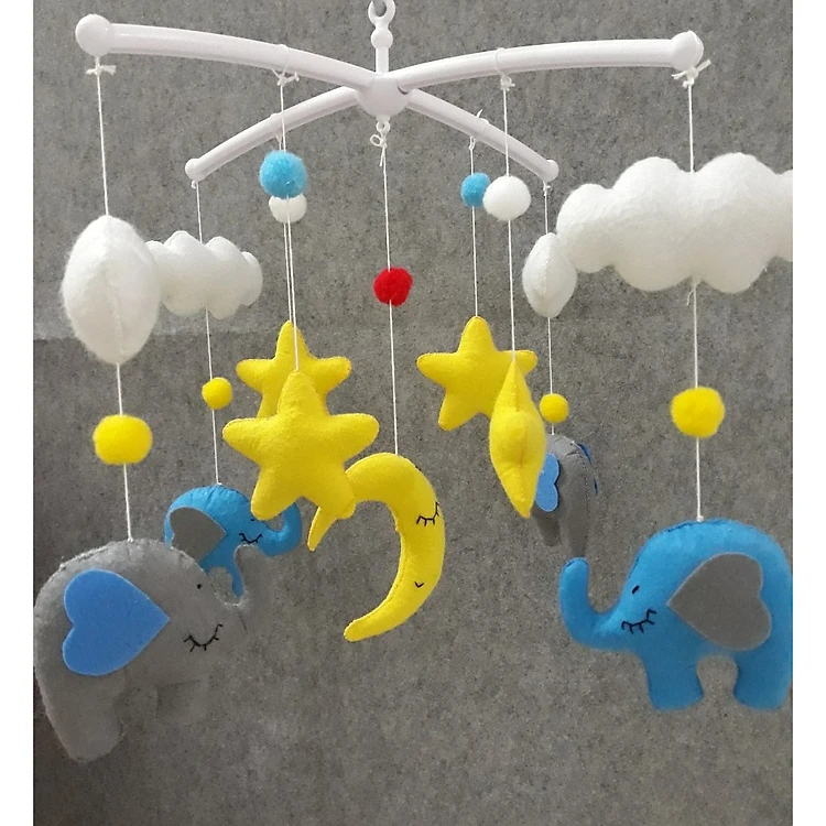 Đồ chơi treo nôi cũi kích thích thị giác hình voi màu sắc được làm handmade khâu tỉ mẩn bằng tay, chất liệu vải nỉ.