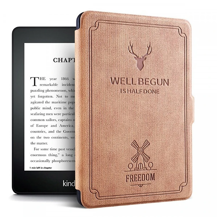 Combo Máy Đọc Sách Kindle Paperwhite Gen 10th (8GB - Màu Đen) và Bao da WELL BEGUN Màu vàng - Hàng Chính Hãng